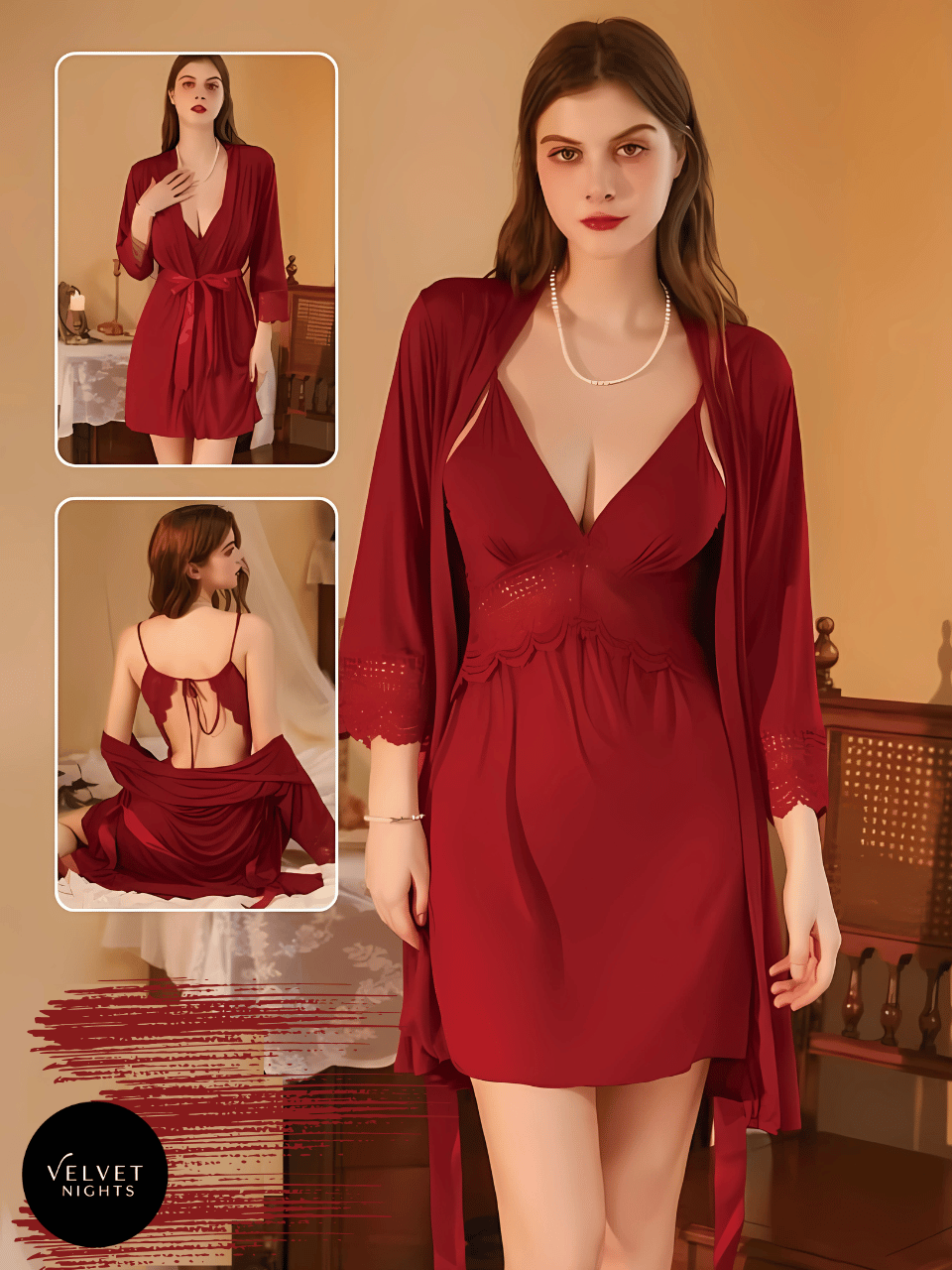 A Midnight Desire 3 Piece Silk Nightwear with Long Gown