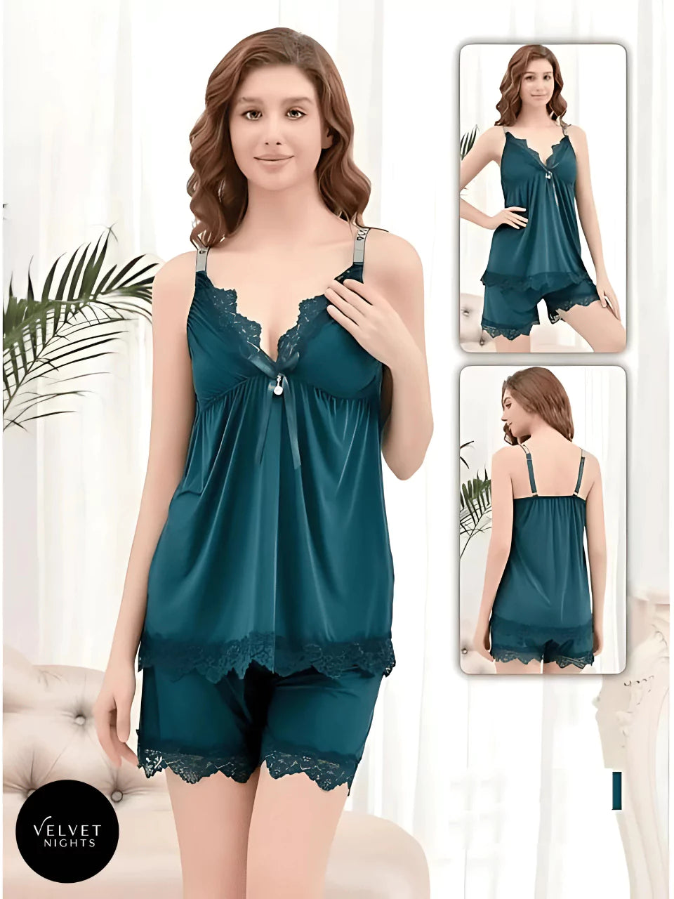 Elegant Satin & Lace Sleepwear Set – 2-Piece Nightwear