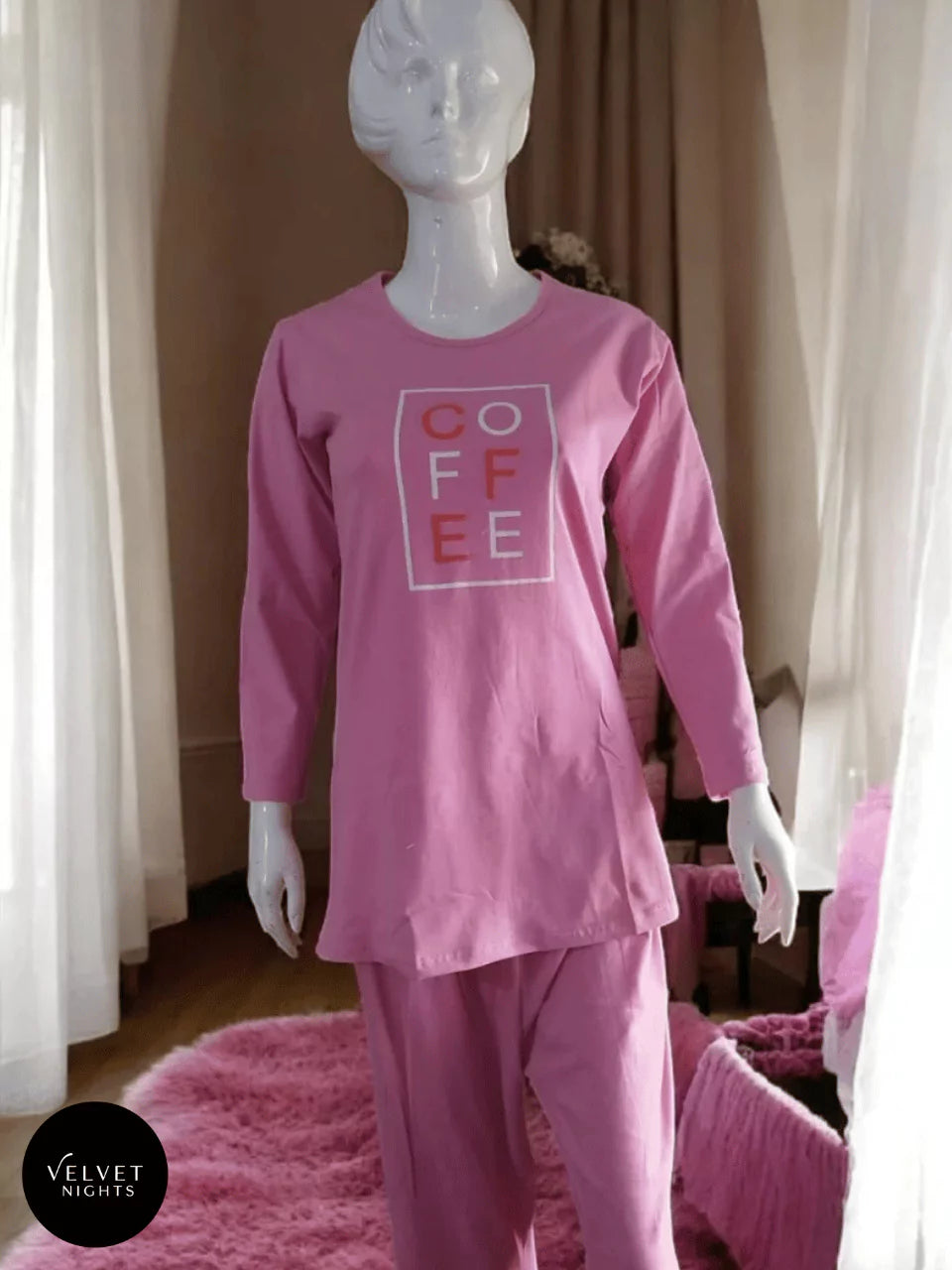 Cozy Coffee – Pink Cotton Pajama Set ☕💖