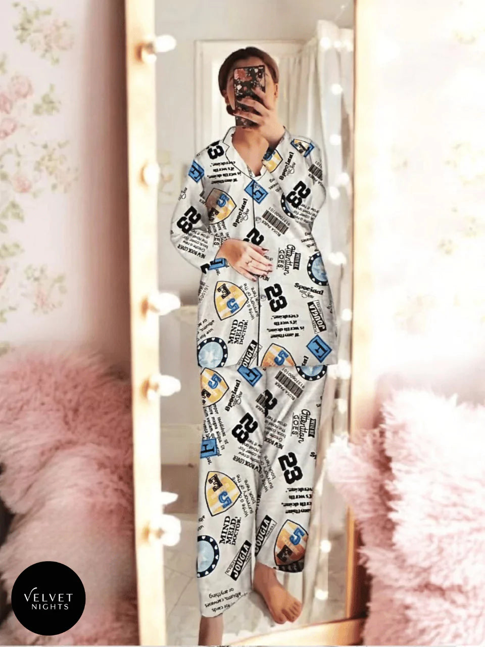 Available in a variety of sizes and charming prints to suit your style. Stay cozy while looking effortlessly stylish with this timeless nightwear set.