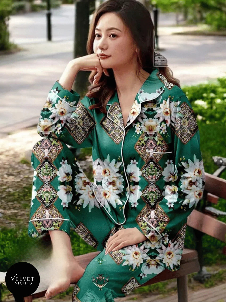 Experience the indulgence of silk as it glides against your skin, keeping you cool and comfortable all night long. Whether you’re unwinding after a long day or enjoying a cozy evening, this set in soft emerald hues is the epitome of style and relaxation that contributes to the coolness of your eyes...