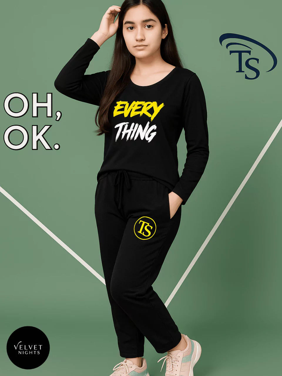 This night suit is your go-to for a restful night’s sleep or lounging at home in effortless style. Its breathable fabric ensures a sweat-free experience, while the timeless design makes it a versatile addition to your wardrobe.
